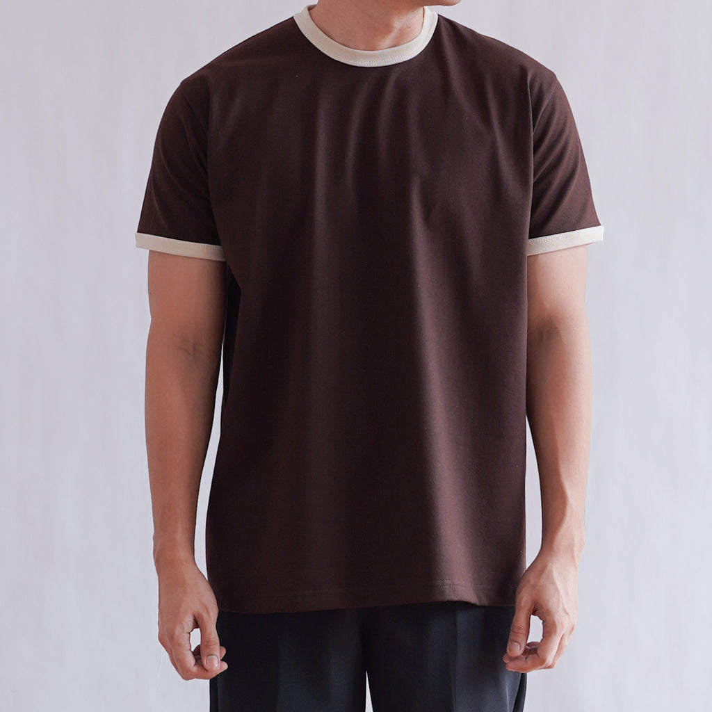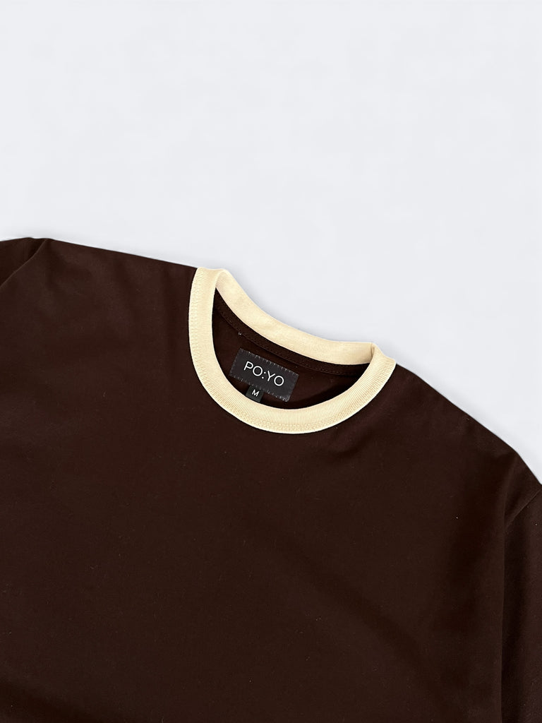 CLASSIC RINGER TEE IN DARK BROWN/OFF WHITE